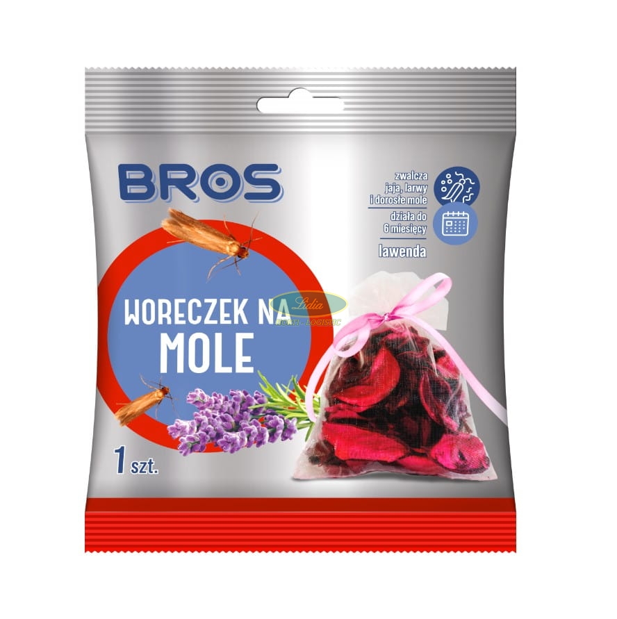 Woreczek z dodatkiem substancji aktywnej skutecznie zwalcza mole: osobniki dorosłe, larwy i jaja. Chroni ubrania z wełny i włókien mieszanych oraz wypełnia chronione wnętrze przyjemnym aromatem. Zabezpiecza szafę o pojemności 1 m3 aż do 6 miesięcy.
