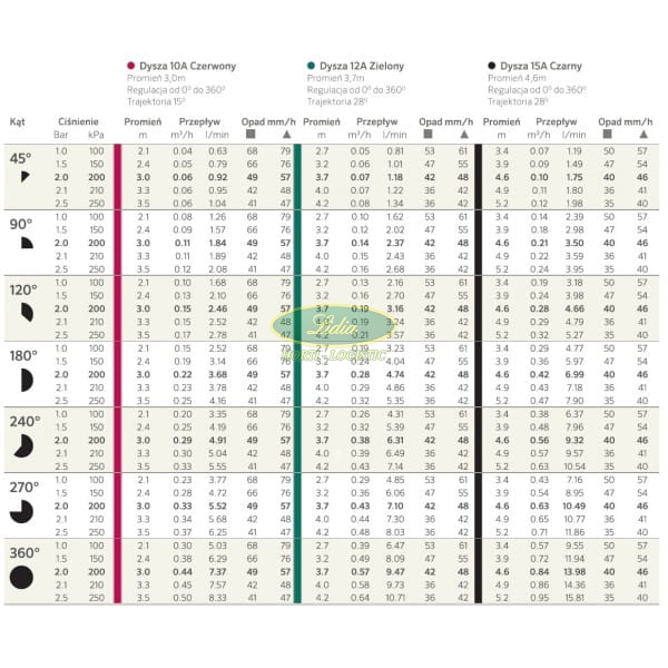 - Promień (przy 2,1 bar): ok. 3,7 m