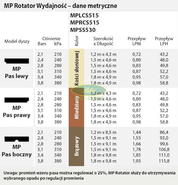 - Technologia MP Rotator – wielotorowe strumienie zapewniają wysoką równomierność nawadniania