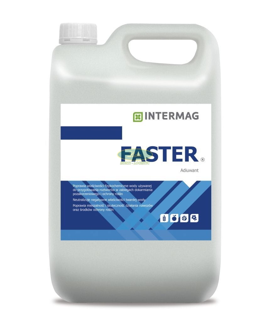 FASTER to adiuwant wspomagający zabiegi dokarmiania pozakorzeniowego oraz ochrony roślin. Poprawia właściwości cieczy roboczej, dzięki czemu zwiększa efektywność nawozów dolistnych oraz środków ochrony roślin.