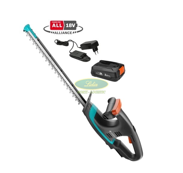 GARDENA akumulatorowe nożyce do żywopłotu EasyCut 40/18V P4A w formie zestawu zawierają ładowarkę oraz szybko ładujący się akumulator 18V POWER FOR ALL. POWER FOR ALL ALLIANCE to jeden z największych sojuszów strategicznych wiodących producentów produktów akumulatorowych. Akumulatory z tej serii mogą być używane w wielu różnych urządzeniach do domu i ogrodu.