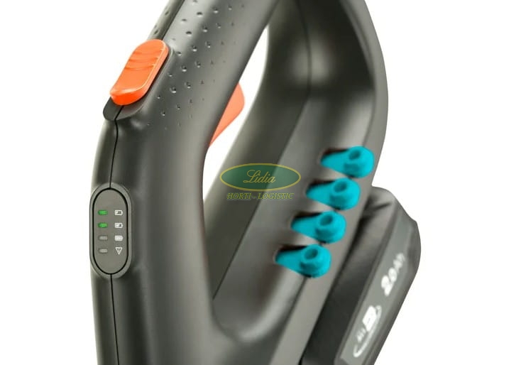 - Wskaźnik LED – stały podgląd poziomu naładowania akumulatora