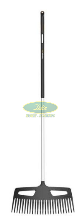 Narzędzie do grabienia dużych powierzchni oraz usuwania ściętej trawy. Lekki, aluminiowy trzonek o specjalnym profilu. Ergonomiczna rączka z powłoką Softgrip. Wygodny otwór do zawieszania narzędzia na haku.