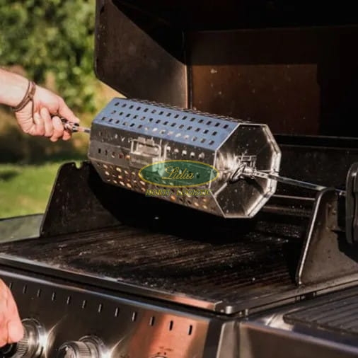 Kosz obrotowy do grillowania na rożnie obracanym silnikiem elektrycznym, wykonany jest ze stali szlachetnej. Idealnie sprawdzi się przy przygotowywaniu dań z drobiu oraz warzyw. Od kosza można odpiąć jego górną część i wykorzystać jako wok do grillowania. Kosz mieści się w grillu bez konieczności wyjmowania rusztów, a w grillach z 5 palnikami głównymi zmieszczą się dwa obok siebie.