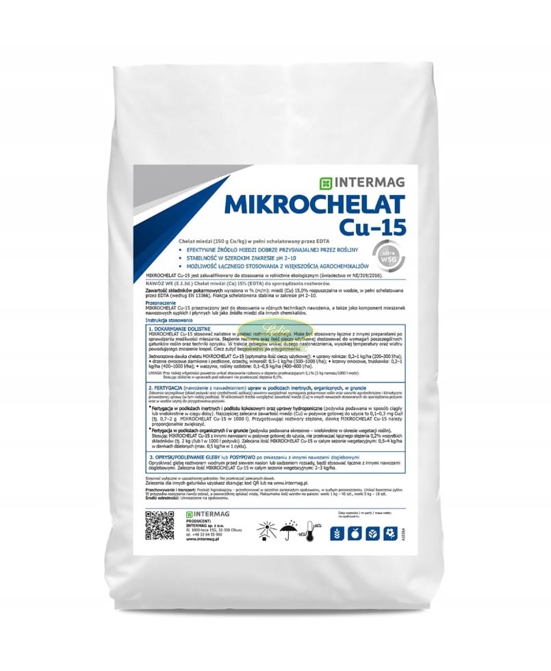 MIKROCHELAT™ Cu-15 stosowany profilaktycznie w uprawach roślin o wysokich wymaganiach w stosunku do miedzi (np. zboża, cebula, marchew, burak ćwikłowy, sałata, szpinak) – jest najefektywniejszym źródłem miedzi. Jest też niezbędny w przypadku występowania warunków glebowych ograniczających dostępność miedzi dla roślin (wysokie pH, wysoki współczynnik przepuszczalności, wysoka zawartość substancji organicznej, a szczególnie w uprawach na glebach użytkowanych rolniczo od niedawna i zasobnych w próchnicę – tzw. „choroba nowin”).