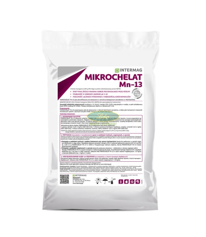 MIKROCHELAT Mn-13 stosowany profilaktycznie w uprawach roślin o wysokich wymaganiach w stosunku do manganu (np. zboża, rzepak, kukurydza, ziemniak, burak, jabłoń, wiśnia, śliwa, brzoskwinia, malina, groch, fasola, szpinak, kapusta) – jest najefektywniejszym źródłem manganu. Jest też niezbędny w przypadku występowania warunków glebowych ograniczających dostępność tego składnika dla roślin (wysokie pH, wysoka zawartość żelaza, brak tlenu w strefie korzeniowej). Stosowany w terminach i dawkach zalecanych w programach nawożenia poszczególnych gatunków, skutecznie zapobiega powstawaniu niedoboru manganu w roślinach.