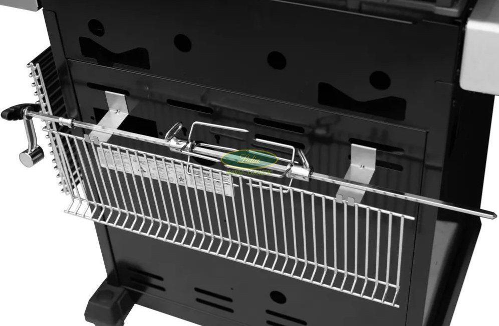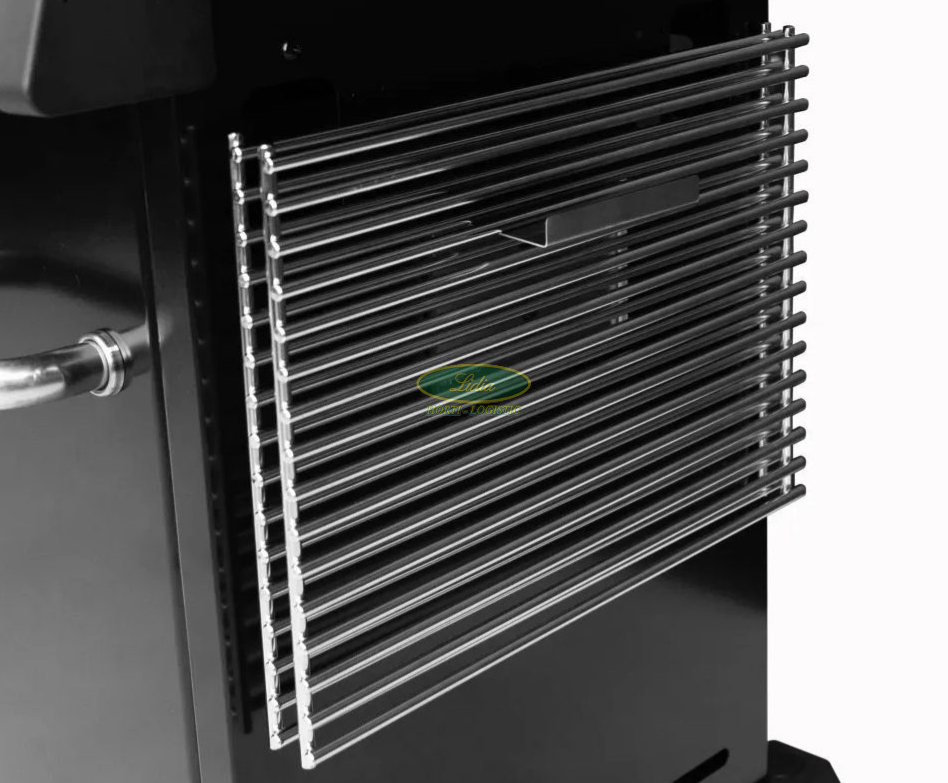 Wieszak na ruszty, montowany z prawej strony grilla, umożliwia zawieszenie i przechowywanie do 6 rusztów. To rozwiązanie zapewnia łatwy dostęp do akcesoriów podczas grillowania, co zwiększa komfort użytkowania.