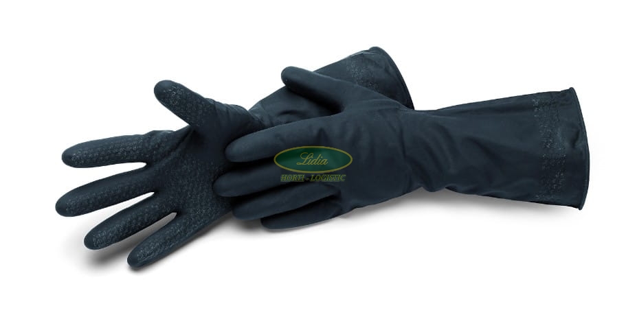 Rękawice do prac domowych, z lateksu, odporne na rozpuszczalniki nitro i chemikalia.