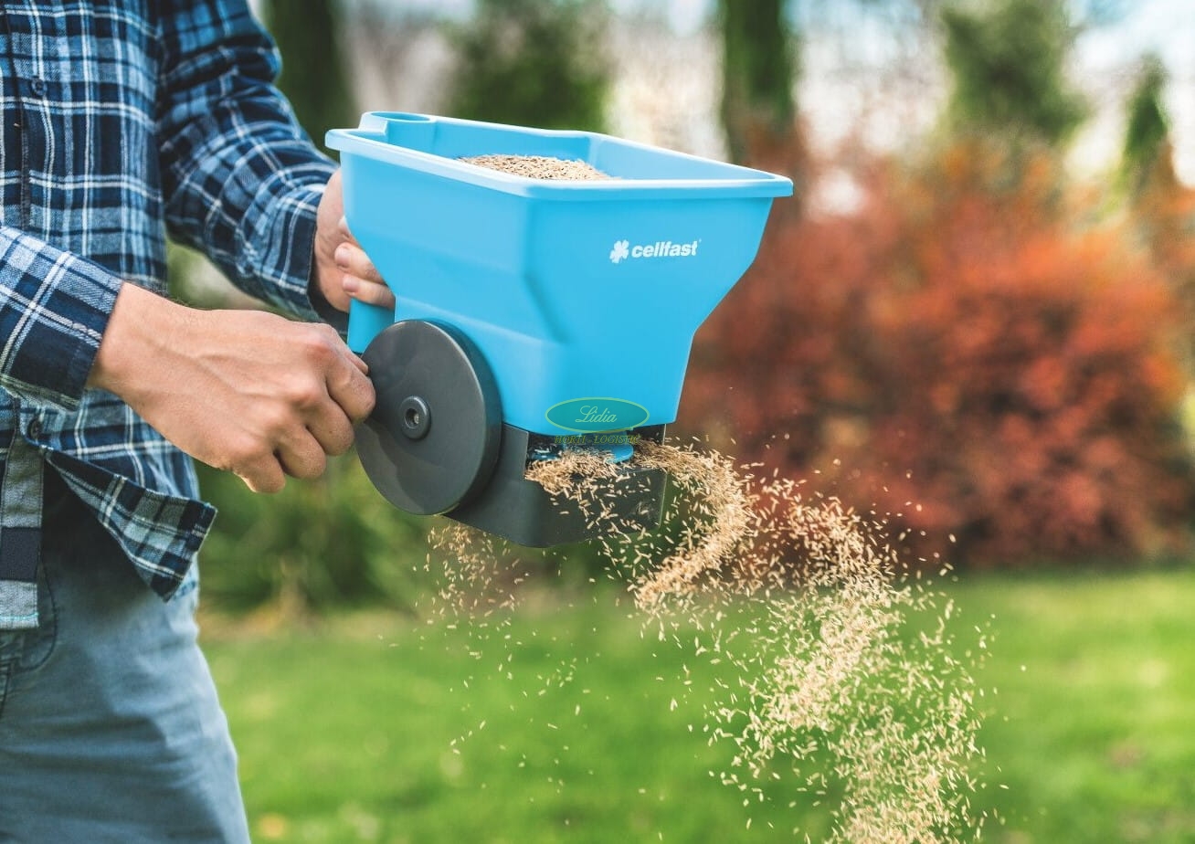 Przeznaczony do rozsiewania trawy lub nawożenia, niezbędny również zimą podczas posypywania oblodzonych chodników piaskiem lub solą. Posiada obrotową korbkę, dzięki której można w łatwy sposób kontrolować i dozować jego dawki w zależności od granulacji i zapotrzebowania.