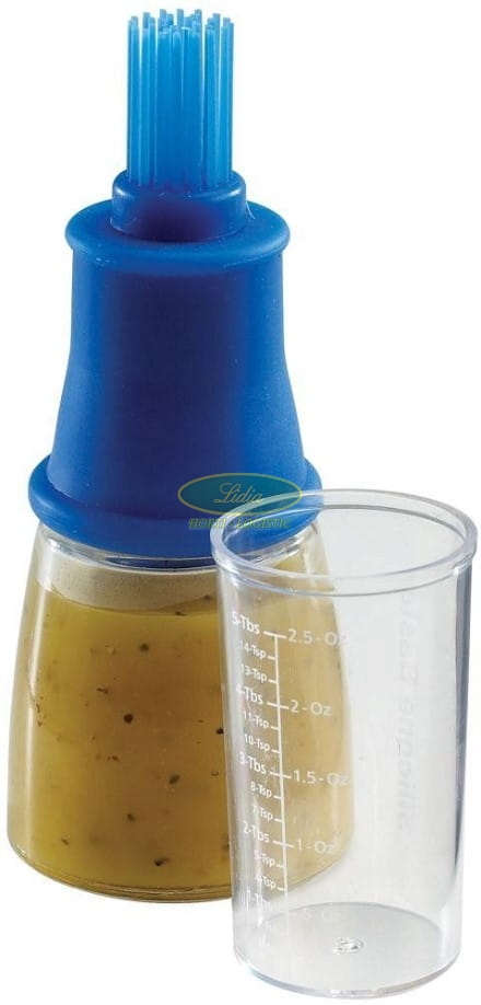 Pojemnik z pędzelkiem jest idealny do przechowywania marynaty, do nawilżania i natłuszczania mięsa przed i w trakcie grillowania. Wystarczy napełnić butelkę oliwą, sosem bbq bądź marynatą i za pomocą nałożonego na butelkę pędzelka natrzeć jedzenie przed lub w trakcie grillowania. Dodatkowo w zestawie jest miarka pozwalająca na dokładne odmierzenie proporcji marynaty. Pędzelek pasuje do butelek o różnej średnicy gwintu.