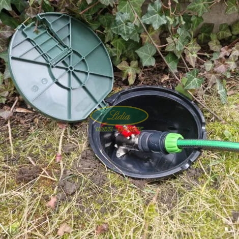 Funkcjonalna i estetyczna studzienka poboru wody z zieloną pokrywą typu HIDE to praktyczne rozwiązanie do każdego ogrodu, szklarni czy działki. Dzięki zastosowaniu wytrzymałego tworzywa sztucznego (PEHD) oraz stalowego zaworu kulowego, gwarantuje niezawodne działanie i długą żywotność nawet w trudnych warunkach.