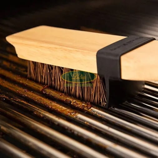 Szczotka posiada sztywne, lecz delikatne włosie z palmy, któro znacznie ułatwia czyszczenie rusztów bez uszkodzenia zewnętrznej powłoki. Ze względu na długą, solidną rękojeść szczotka doskonale sprawdza się przy czyszczeniu gorącej powierzchni rusztu (do 232°C). Dodatkowo posiada skrobak oraz gumowy chlapacz osłaniający przed odpryskującym tłuszczem i zabrudzeniami.