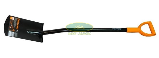 Szpadel prosty z głowicą ze stali hartowanej i stalowym trzonkiem. Głowica połączona z trzonkiem za pomocą spawu.